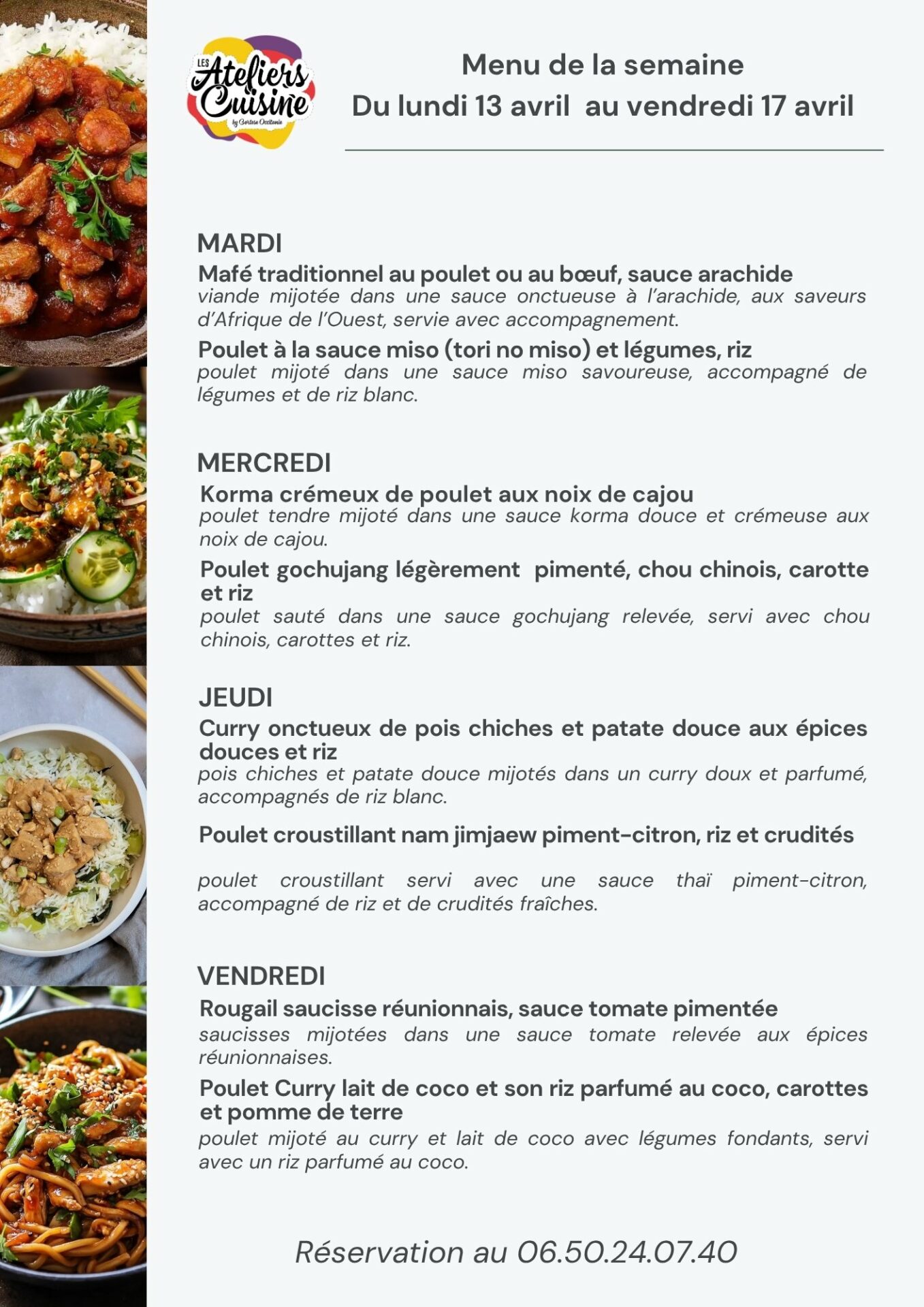 Menu Mana cuisine pour toi